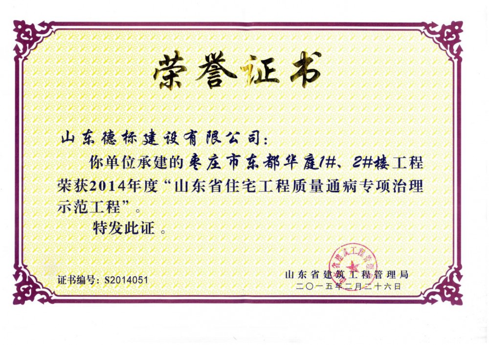 2014年度山東省質(zhì)量通病專項治理示范工程-東都華庭1#···