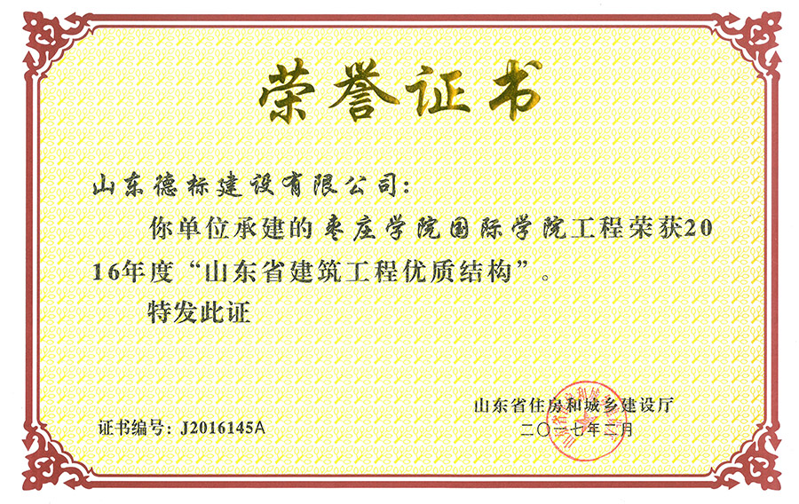 2016年度山東省建筑工程優(yōu)質(zhì)結(jié)構(gòu)-棗莊學(xué)院國際學(xué)院