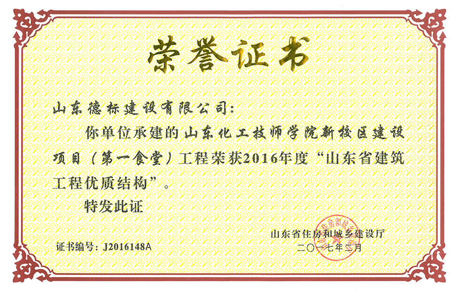 2016年度山東省建筑工程優(yōu)質(zhì)結(jié)構(gòu)-山東化工技師學(xué)院第一···