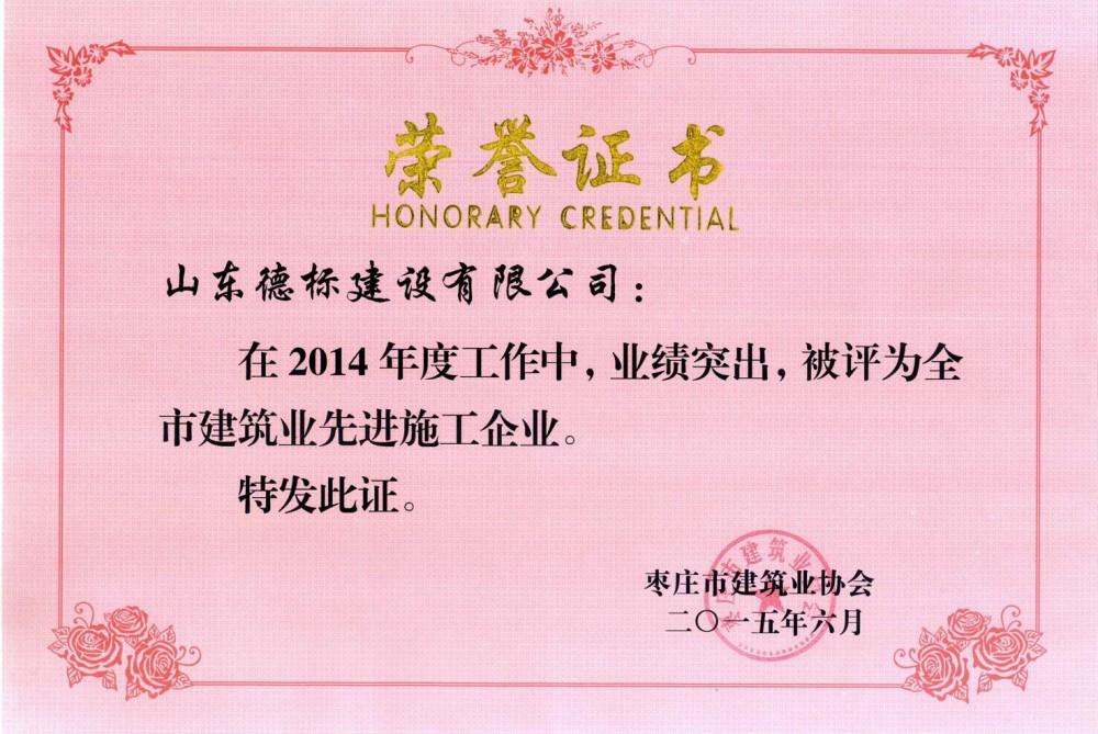 2015年度市建筑業(yè)先進(jìn)企業(yè)